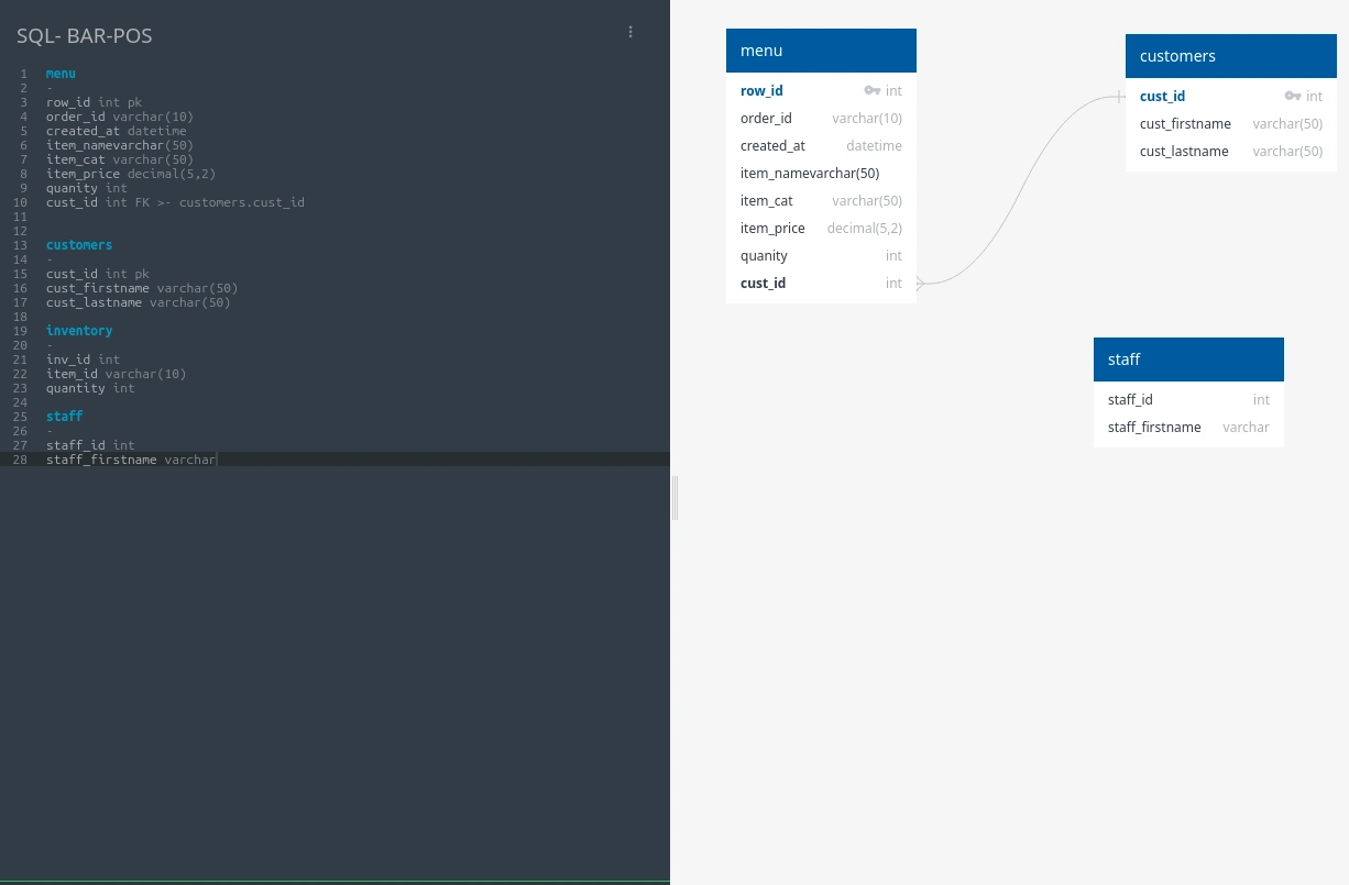 - Expand schema to include menu items, inventory, and sales